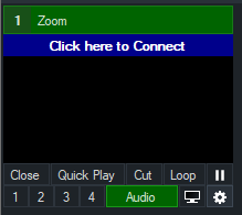 Once one or more Zoom inputs have been added (see Getting Started), setup the meeting for the inputs by clicking the Click here to Connect bar under one of the inputs.